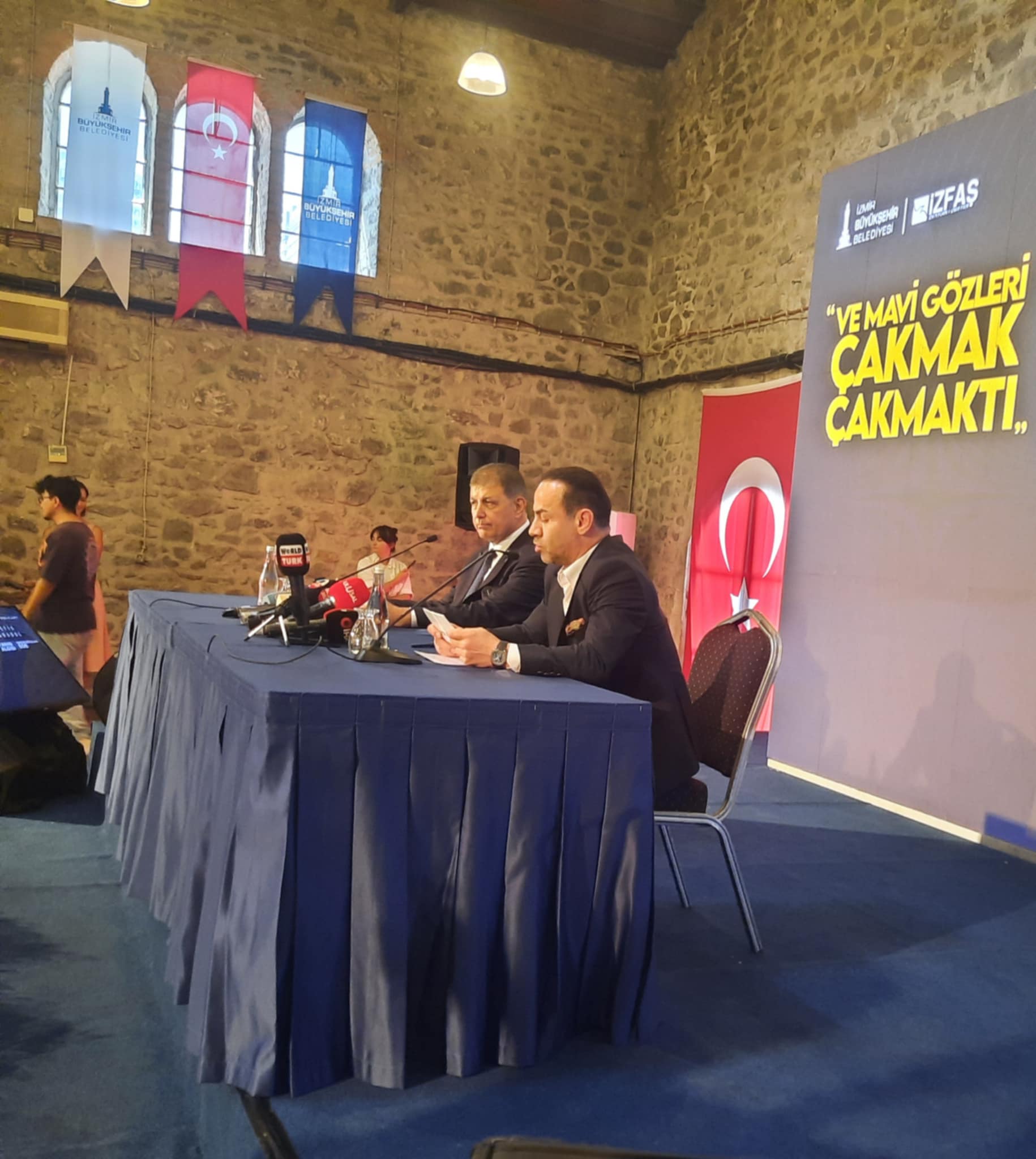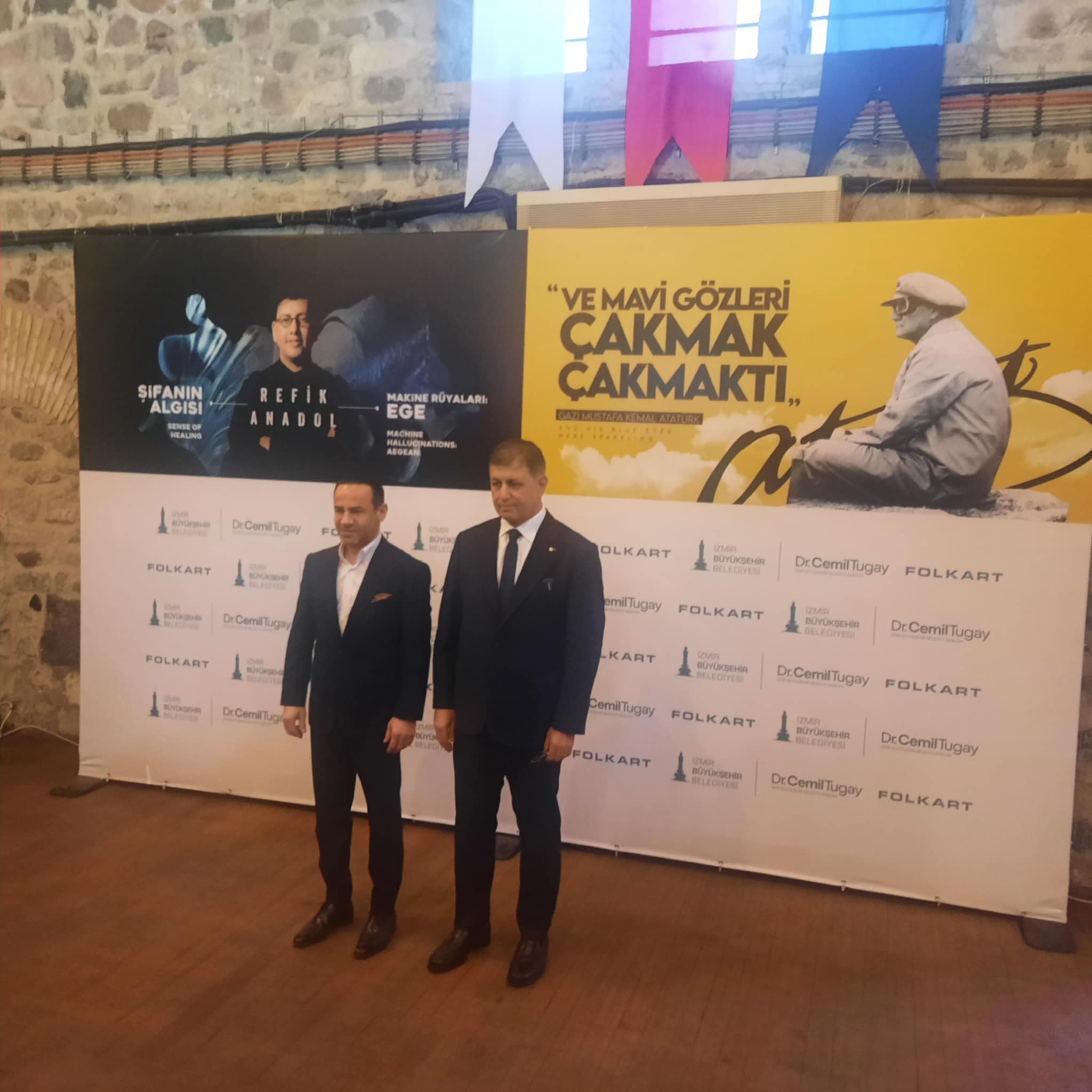 İzmir Büyükşehir Belediye Başkanı Cemil Tugay, İzmir Büyükşehir Belediyesi (İzBB) ev sahipliğinde, Folkart işbirliğiyle 94. İzmir Enternasyonal Fuarı kapsamında düzenlenen ‘Ve Mavi Gözleri Çakmak Çakmaktı – Mustafa Kemal Atatürk’ sergisi ile Refik Anadol’un ‘Şifanın Algısı ve Makine Rüyaları: Ege’nin’ Sergileri tanıtımı için basın toplantısı Tarihi Havagazı Fabrikası’nda yapıldı.