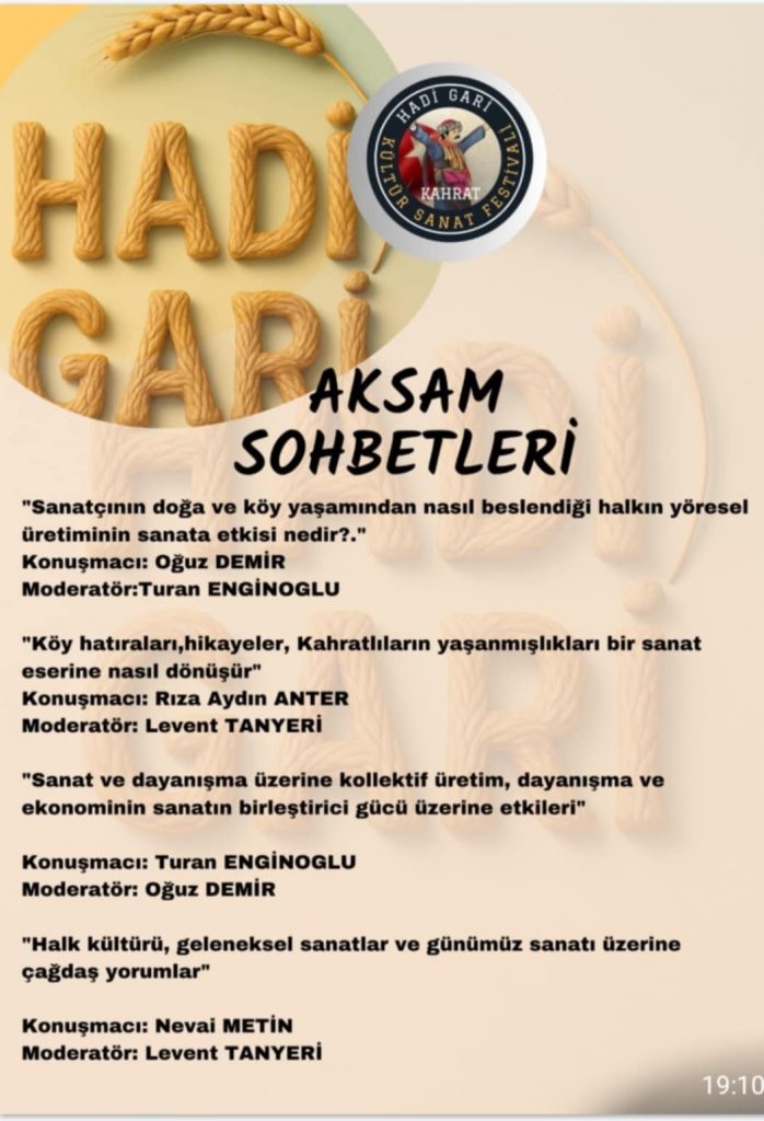 Nevai metin. İzmir’in Tire ilçesine bağlı Kahrat Mahallesi, 16-21 Temmuz 2025 tarihleri arasında doğayla, sanatla ve dayanışmayla iç içe bir festivalin ev sahibi olacak. Kahrat Mahallesi Güzelleştirme ve Koruma Derneği, Uluslararası Sanatçılar Birliği Derneği ve Tire Belediyesi iş birliğiyle düzenlenen HADİ GARİ. festivaline katılacak
