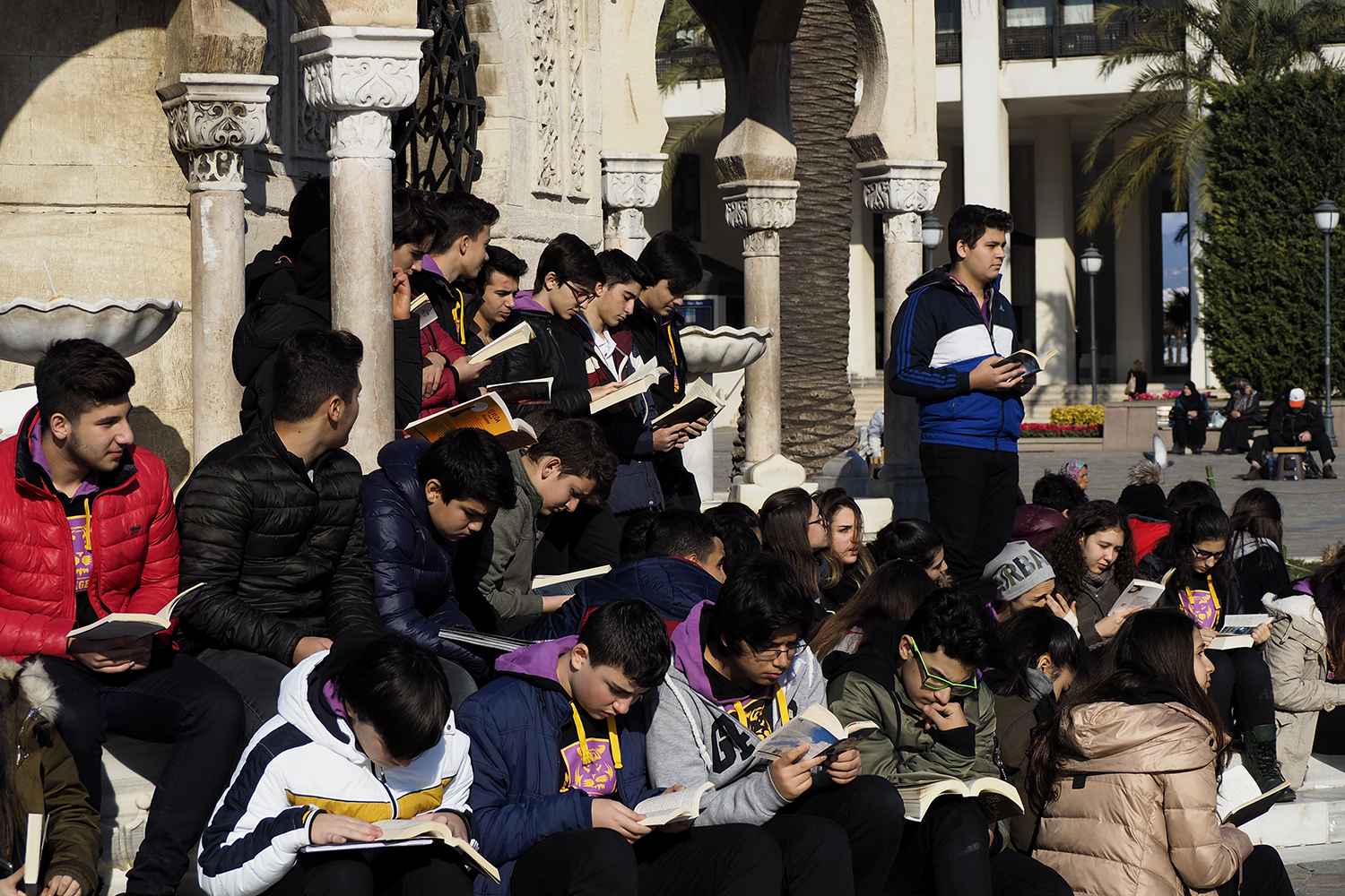 İzmir İl Halk Kütüphanesi eski müdürü Talat Aybilek ve sanatçı arkadaşları Ercan Doğu, Cem Seyhun Ünbay, Orhan Beşikçi, Cahit Aşıkoğlu ve Harun Cici ile “ okuyan nesiller yetiştirme” konusunda farkındalık yaratmak amacıyla başlattığı kitap okuma etkinliklerine Uğur Okulları Gaziemir Kampüsü öğrencileri de katıldı. Anadolu ve Fen Lisesi’nde okuyan lise 9. ve 10. Sınıf öğrencileri Konak Meydanı’na gelerek Saat Kulesi’nin önünde bir saat kitap okudu.