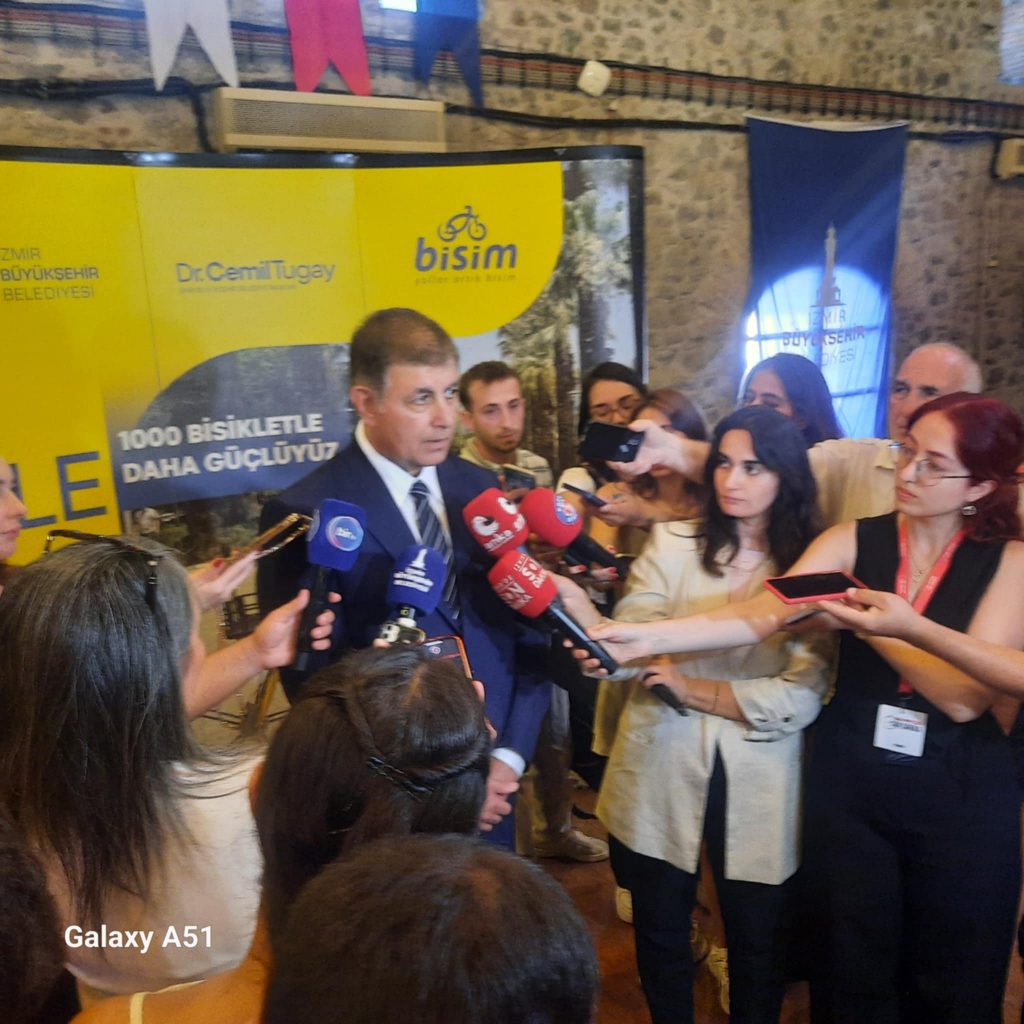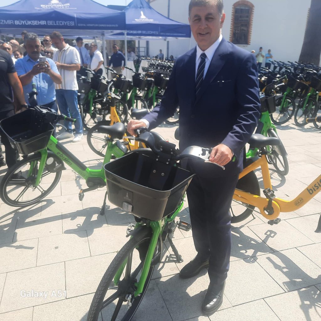 Kent içinde bisiklet kullanımını artırmak için çalıştıklarını kaydederek konuşmasına başlayan İzmir Büyükşehir Belediye Başkanı Dr. Cemil Tugay, “BİSİM İzmir için simgesel anlamda da çok önemli. BİSİM, ben göreve gelmeden üç ay önce yenileme ihtiyacı nedeniyle kaldırılmış. Bisikletler eskimiş ve yıpranmıştı. Pek çoğu kullanılmaz durumdaydı. 2014’te başlayan bu gelenek, çok saygı duyduğunuz, inandığımız, İzmir’imizin de ihtiyacı olan bir hizmetti. 500 elektriksiz, 500 elektrikli yepyeni bisikletleri kullanıma sunarak bisiklet kullanımını şehrimizde desteklemeye devam edeceğiz. İzmir, Türkiye’nin en güzel bisiklet rotalarına sahip ili. Deniz kıyısında, keyifli rekreasyon alanlarından geçen 105 kilometrelik bisiklet yolumuz var. Bisiklet gerçekten bir ulaşım aracı. İnsanlar şehir içinde bir yere giderken bisiklet kullansınlar, böyle bir alışkanlık oluşsun istiyoruz ki motorlu araçları daha az kullanalım, karbon emisyonumuz düşük olsun, havamız temiz olsun, trafik daha az olsun” diye konuştu.