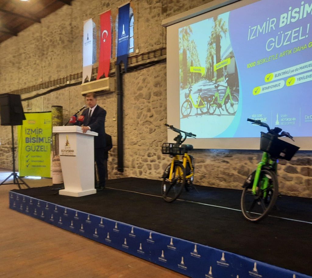 Tanıtım toplantısında konuşan İZULAŞ Yönetim Kurulu Başkanı Yalçın Alver ise “Türkiye’de bisiklet gezi ve eğlenceli amacıyla kullanılıyor ama biz İzmirlilerin hayatında bisiklet olsun istiyoruz. Toplu taşıma öncesi ve sonrasında istedikleri yere hızlıca ulaşsınlar istiyoruz. İzmir Büyükşehir Belediyesi’nin daha sürdürülebilir, sağlıklı ve yaşanabilir İzmir hedefine yeni bisikletlerin katkısının olacağını düşünüyoruz” ifadelerini kullandı.