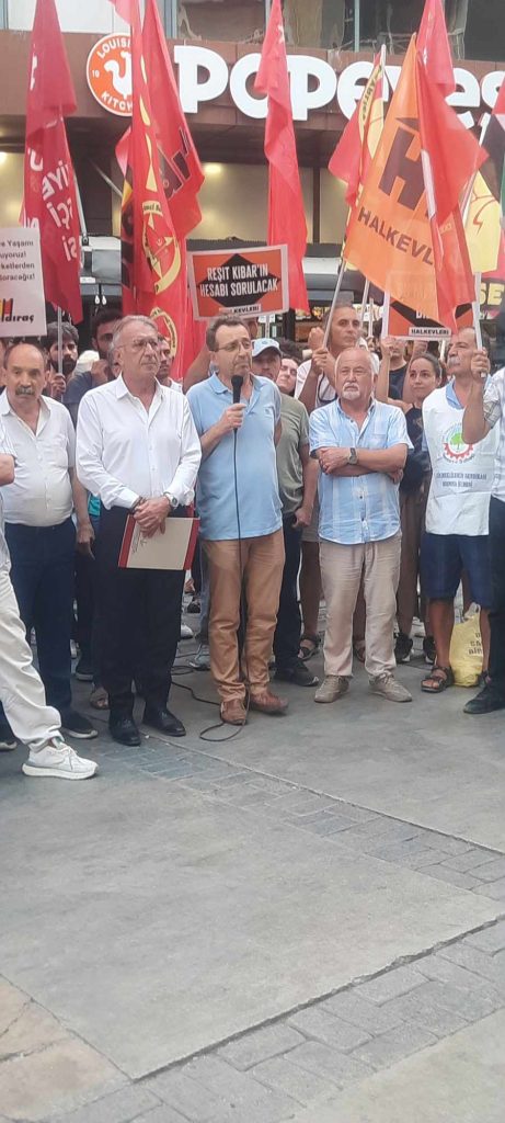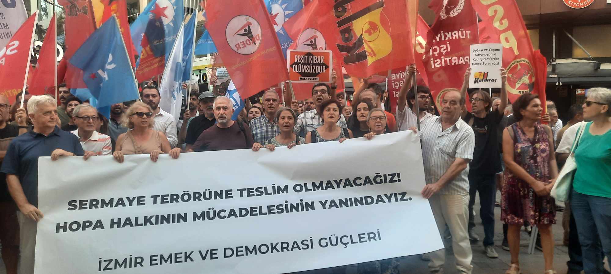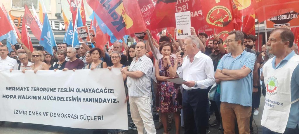 Bugün Emek ve Demokrasi Güçleri olarak Sermaye Terörüne karşı bir araya geldik. Doğaya, insana, çocuğa, kadına, emeğe, kısacası yaşamı yaratanlara yönelik saldırılara bir yenisi daha eklendi. 3 Eylül 2024 günü sabah saatlerinde Artvin’in Hopa ilçesi, Cankurtaran mevkiinde bir rant projesi için orman ihalesini alan şirket eliyle yoğun ağaç kesimi ve doğa katliamı yapılmaya başlanmıştı. İktidara yakınlığı ile bilinen söz konusu şirket çalışanları, doğayı, yaşam alanını korumak ve ağaçların kesilmesini engellemek isteyen yöre halkına ateş açmıştır. Saldırı sonucunda yaşam alanı savunucularından bir kişi hayatını kaybetmiş, iki kişi yaralanmıştır. Acımız büyük, üzgün ve öfkeliyiz. Aynı bölge için daha önce de ÇED raporu alınmış, Artvin Barosunun açmış olduğu dava sonucu bu rapor iptal edilmişti. Ancak alanın ranta açılması hırsı durmadı. Söz konusu şirket yeni bir projeyle daha önce ÇED raporu alınamayan yerde ağaçları kesmeye başladı. Bunun üzerine yaşadığı alanı, doğayı korumak isteyen köy halkı, ağaçların kesilmesine engel olmak için bölgeye gitmiş ancak şirket sadece ağaçları değil insanları da katletmiştir. Ağaçlara, hayvanlara değer vermeyen kendini üstün gören zihniyetin diğer insanların yaşamına da değer vermediğine bir kez daha tanık olduk. Yaşanan vahşet, kapitalist zihniyetin rant için doğayı da insanı da katletmeye çekinmeyeceğinin son örneğidir.