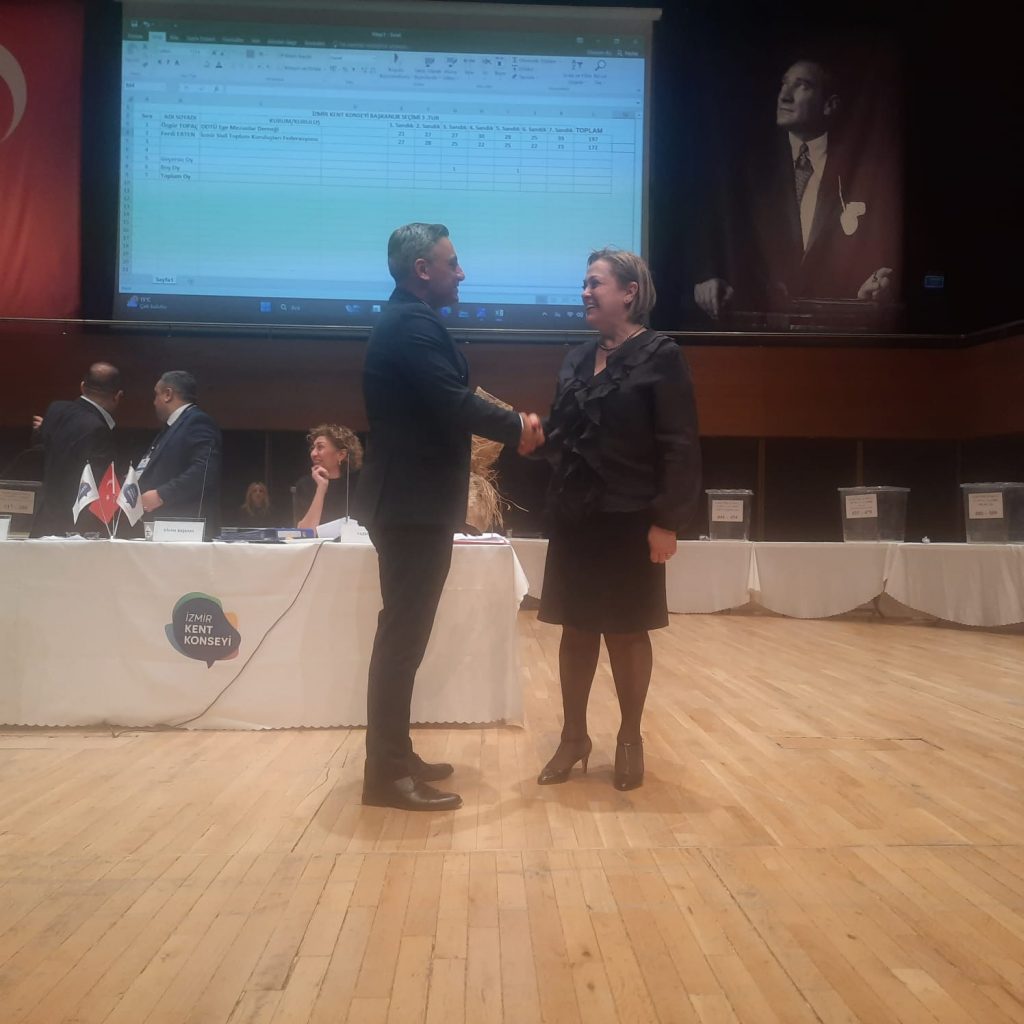 Yeni dönemde aday olmadığını belirterek adaylara başarılar dileyen Kökkılınç, 15 yıldır varlığını sürdüren bir üst sivil toplum oluşumu olan İzmir Kent Konseyi’nde, gönüllülükle yürütülen bir hizmet döneminin daha sona erdiğini, genel kurulda oybirliği ile almış oldukları bir kararla seçilmiş organların en fazla iki dönemle sınırlı olarak görev üstlenmeleri yolundaki yönerge kuralı ile kurumsal yenilenmenin ve sürdürülebilirliğin önünü açtıklarını söyledi. Karar organlarında ard arda bir kadın, bir erkek olacak şekilde fermuar sistemi ile seçim kuralı getirerek temsilde eşitliği sağladıklarını aktaran Kökkılınç, İzmir Kent Konseyi’ne bugüne dek vermiş oldukları desteklerden ötürü İzmir Büyükşehir Belediye Başkanlığı’na ve İzmir Valiliği’ne teşekkür etti.