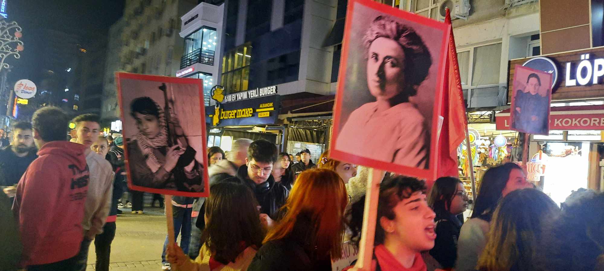İzmir’de 8 Mart Dünya Kadınlar Günü dolayısıyla İzmir Kadın Platformu çağrısıyla 22’nci “Feminist Gece Yürüyüşü” gerçekleştirildi. CHP Konak Belediye Başkan adayı Nilüfer Çınarlı Mutlu, DEM Parti İzmir Büyükşehir Belediyesi eş başkan adayı Türkan Aslan, DEM İzmir Milletvekili Burcugül Çubuk’un da yer aldığı grup Kıbrıs Şehitleri Caddesi’nde bir araya geldi ve Türkan Saylan Kültür Merkezi’ne doğru yürüdü. Yürüyüşte emniyet güçleri geniş güvenlik önlemleri alırken, alanda kadınlar tarafından “8 Mart eşit, özgür bir yaşamı birlikte kazanacağız!” sloganları atıldı. Basın açıklamasını “Feminist Gece Yürüyüşü” ekibi adına Dilek Sav okudu.