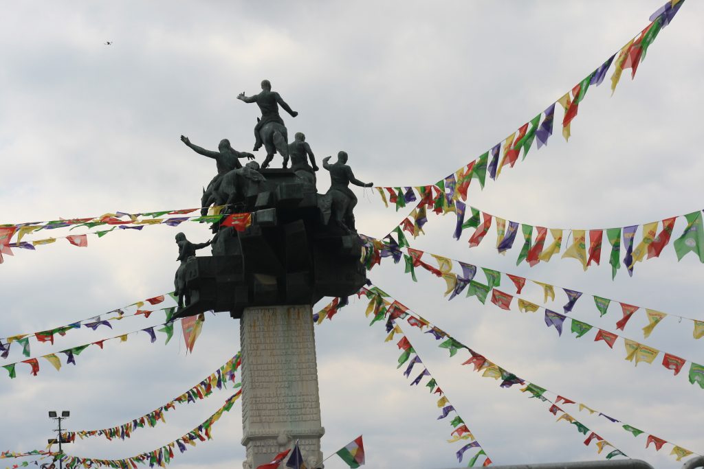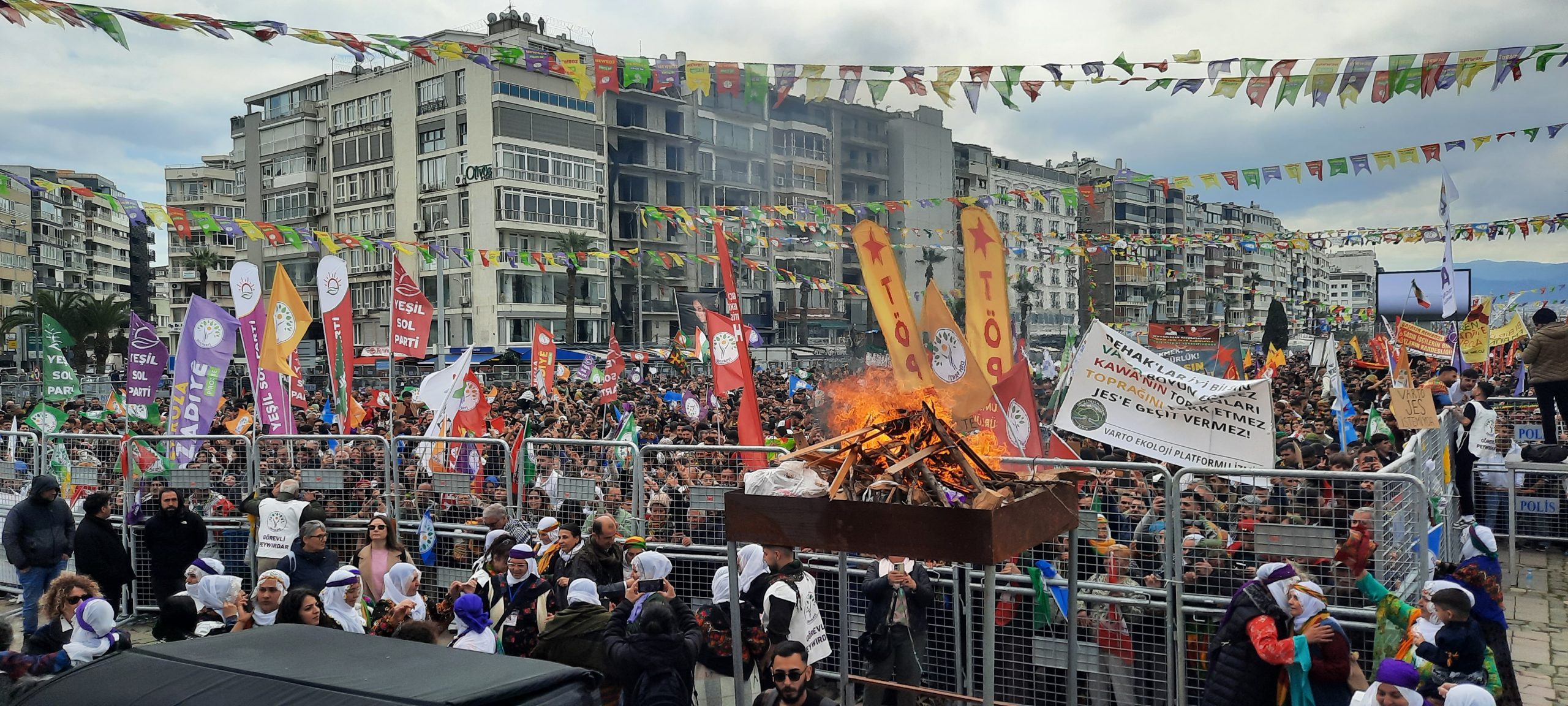 DEM Parti öncülüğünde, ‘Özgürlük ve Demokrasi Nevruzu’ sloganıyla Gündoğdu Meydanı’nda etkinlik düzenlendi. Etkinlik öncesinde bölgede geniş güvenlik önlemleri alındı. Etkinlik nedeniyle birçok yol ve sokak araç trafiğine kapatılırken, alana gelenler oluşturulan polis noktalarında arama yapıldıktan sonra içeri alındı.