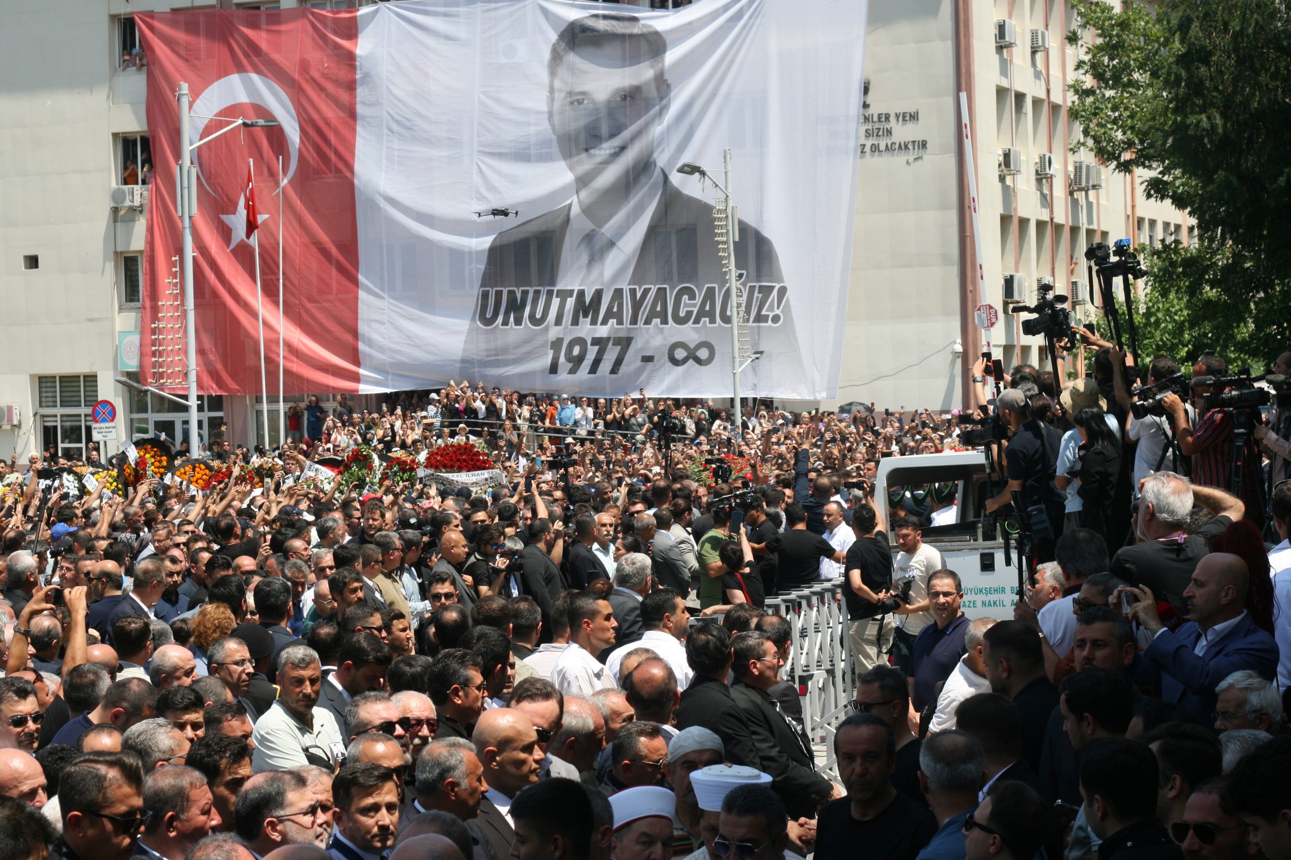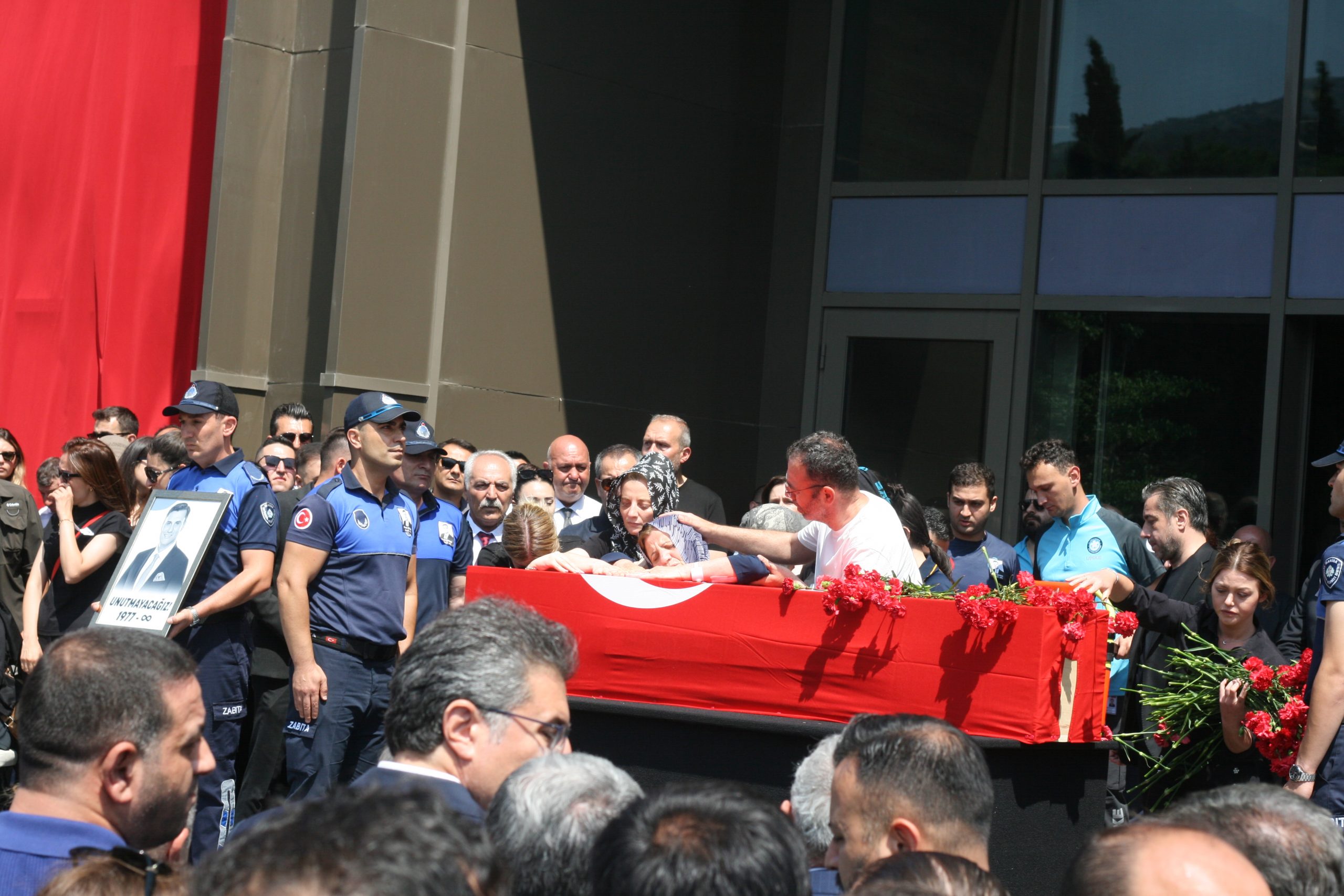 Nurcan Zeyrek “Üç yavrum var sözümü tutacağım, onlara hem anne hem baba olacağım”Manisa’nın 17 ilçesindeki bin 766 camide Zeyrek için sela okunurken, ilk tören Manisa Büyükşehir Belediyesi önünde Zeyrek’in çalışma arkadaşları ve belediye personelinin katılımıyla yapıldı. Binlerce Manisalı da törende yer aldı. Zeyrek’in cenazesi, üzerinde Türk bayrakları ve taraftarı olduğu Manisaspor’un bayrağının konulduğu cenaze aracıyla belediye binasının önüne taşındı.