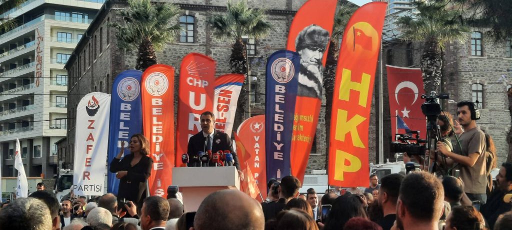 Aziz kocaoğlu. İzmir Atatürk’ten yana, laiklikten yana, Cumhuriyet’ten yana dimdik ayakta duruyor.