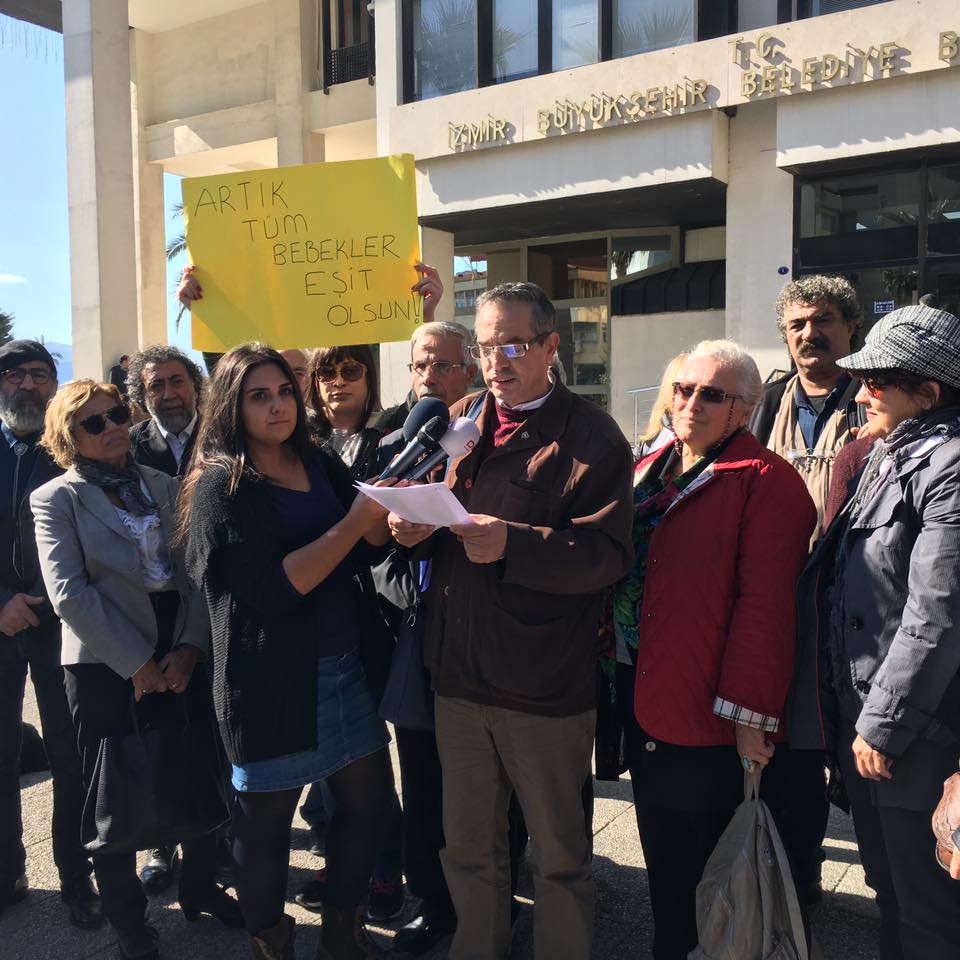 Dilekçeler İzmir Büyükşehir Belediyesi önünde yapılan açıklama ile verildi. Dilekçeyi okuyan Konak Mülteci Meclisi Başkanı Mete Hüsünbeyi, kentte oturan herkesin hemşehri olduğunu belirtilerek “5393 sayılı Belediye Kanunu’nun Hemşehri Hukuku başlıklı 13. maddesinde belirtildiği gibi her insan ikamet ettiği beldenin hemşehrisidir. Hemşehrilerin ise belediye idaresinin yardımlarından yararlanma hakları vardır” dedi.