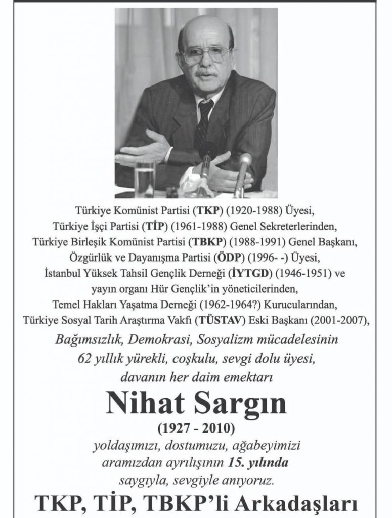 Dün Nihat Sargın abilerimiz hak ve özgürlükler için bedel ödediler. Bugün onlar dirençleriyle ülkemizin geleceğini sırtlanmış taşıyorlar.
