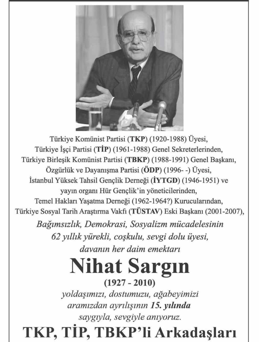 Dün Nihat Sargın abilerimiz hak ve özgürlükler için bedel ödediler. Bugün onlar dirençleriyle ülkemizin geleceğini sırtlanmış taşıyorlar.