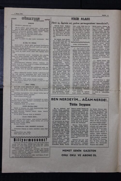 Paylaştığım başyazıda 1961 Anayasası’ndaki haklarını talep ediyor Memet. Arka sayfada (dördüncü sayfa) yer alan “Memet’ten Okurlarına” başlıklı yazıda da aynı saikle “Elinizde tuttuğunuz küçük gazete birçok güçlüklerle savaşarak yayın hayatına atıldı. Amacı emekçilerin sesini duyurmak anayasada yazılı haklarını savunmak” deniyor. Aynı yazıda “Emekçilerin uyanmasından ürken sömürücüler, çıkarcılar elbette önümüze ellerinden gelen bütün engelleri dikecektir. Paranın sağlayabileceği bütün güçler onlarındır” ifadesi bugün de Türkiye yine seçimlere hazırlanırken, güncelliğini koruyor.