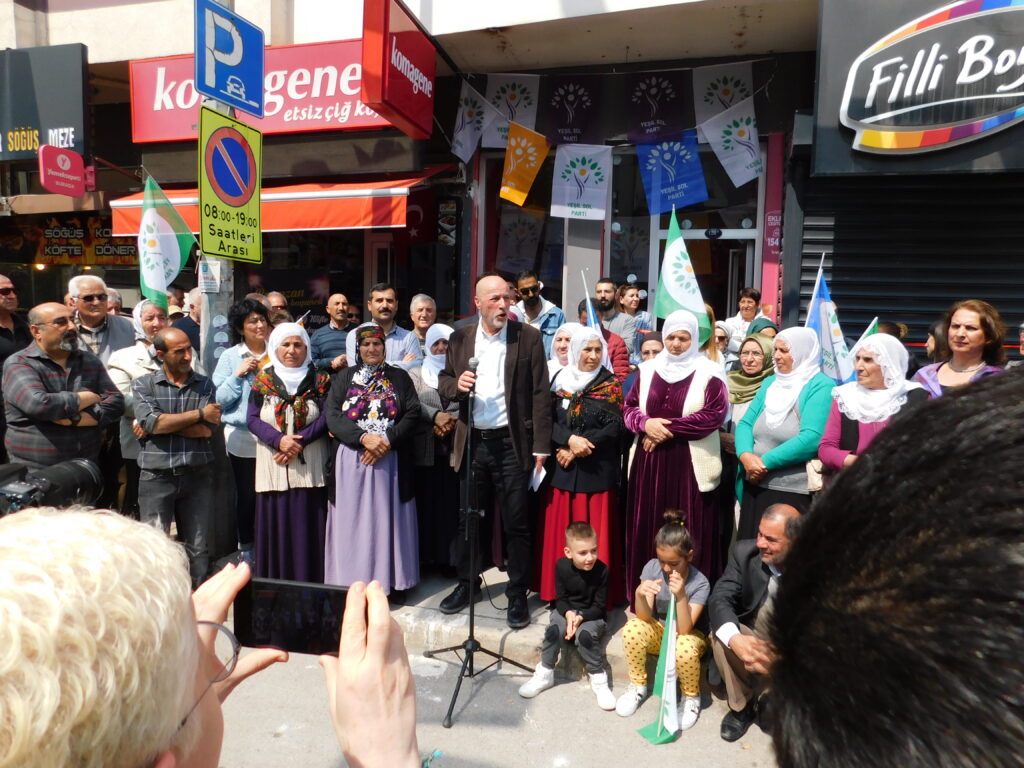 Yeşiller ve Sol Gelecek Partisi (Yeşil Sol Parti) İzmir’in Narlıdere ve Bayraklı ilçelerinde seçim bürosu açılışları gerçekleştirdi. İlk olarak Narlıdere Yeni Kale Mahallesinde yapılan büronun açılışına muhteşem coşkulu katılım gerçekleşti . Narlıdere eş sözcüleri Necdet önoğlu Semra yaşagül coşkulu yeşil sol dostlarına merhaba diyerek Barış demokrasi özgürlük adına bedel ödeyen ezilenlerin kadınların yaşam alanları için mücadele veren çevrecilerin barış annelerinin sözcüsü savunucusu olacaklarını dile getirerek bu süreçte dayanışmanın önemine dikkat çekti. Halkların Demokratik Partisi (HDP) İzmir İl Örgütü yöneticileri, HDP Narlıdere Eş başkanları, Yeşil Sol Parti Meclis üyesi Kenan Işık, Yeşil Sol Parti İzmir İl Eş Sözcüsü Hüseyin Çağlar, Barış Anneleri ve çok sayıda yurttaş katıldı.